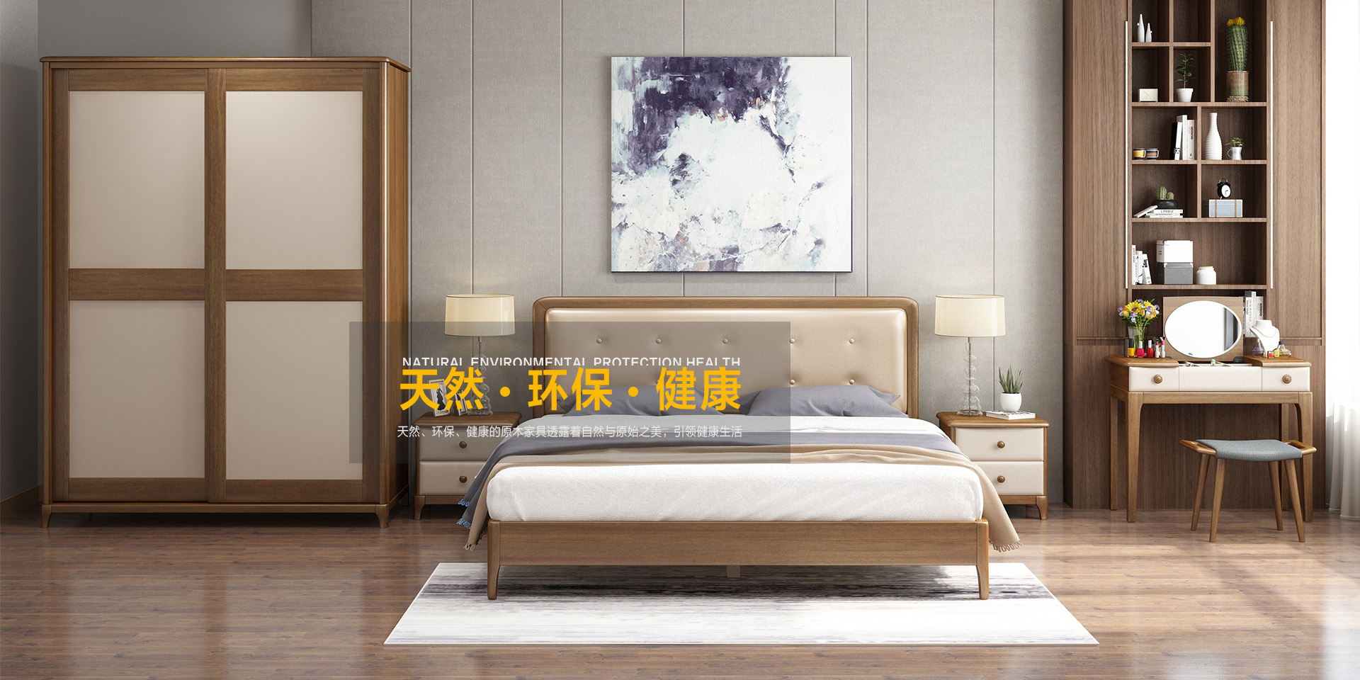A3102床+B3101床頭柜+C3101妝臺(tái)+E3101妝凳+D3102推門衣柜